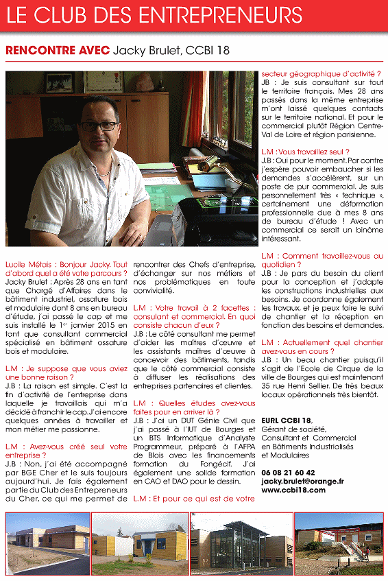 Fort de 28 années en tant que chargé daffaires spécialisé en constructions industrialisées et modulaire (tous corps détats). La solution de construction en tous corps détats doit constituer le principal de nos références, toutefois, nous pouvons (si vous le souhaitez) nous concentrer que sur une partie importante de la construction :